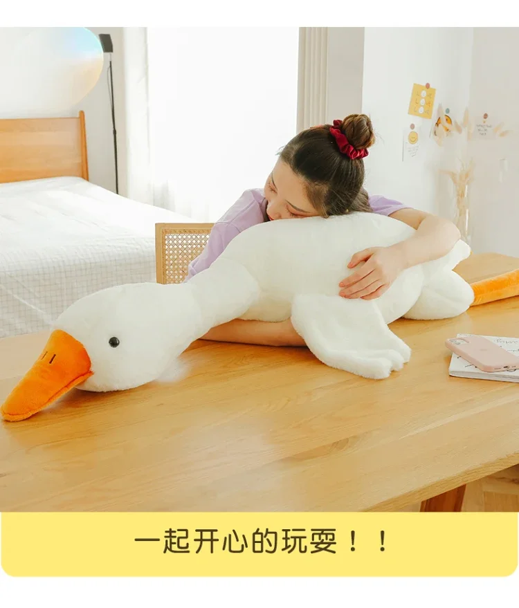 90-190cm Lovely Big White Goose Throw Pillow Plush Toy Big Goose Doll Sleep on Bed