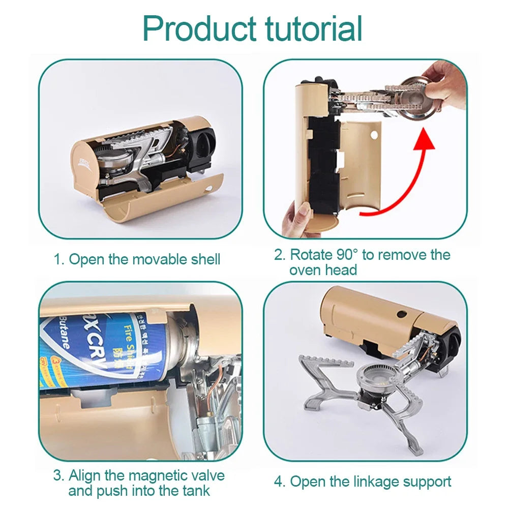 Camping Cassette Stove 2670W Portable Folding Gas Stove Outdoor Picnic Cooking Grill Cooker Gas Burner Heating System